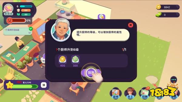 随着你招待的客人越来越多,餐厅积攒到一定的口碑时,你就可以通过招聘服务员和厨师来加快照顾顾客的速度,身为店长的你就可以解放双手啦!