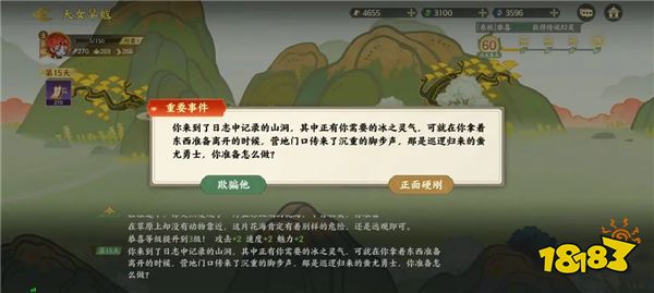 3、这里选择欺骗他,会获得冰之灵气。
