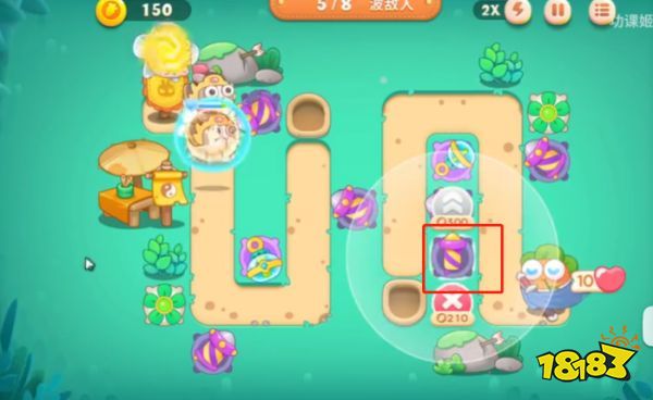 5、将左边下方的泡泡塔进行升级。