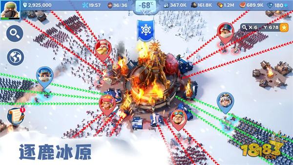 1. 争夺冰原遗留物资,对抗野兽与其他镇长。
