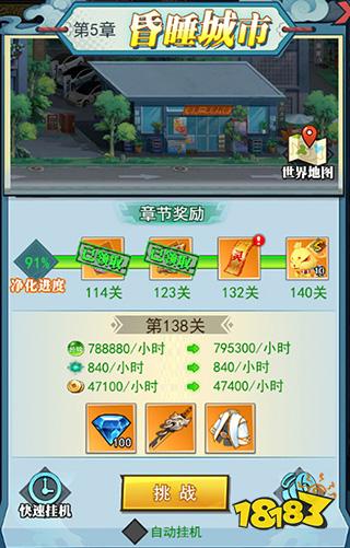 1、照妖镜闯关:玩家每清理三波怪物即可进入BOSS挑战,战胜BOSS通关能够获得大量经验,自动闯关停不下来!