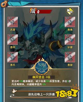 幽冥壁垒:受到攻击时10%概率触发,减少自身所受的20%的伤害,并在5秒内圣尊附体,闪避率提升10%