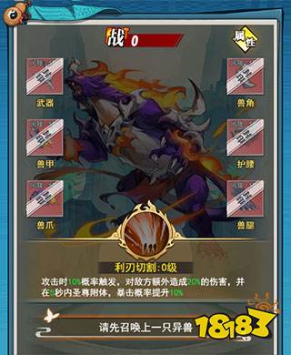 利刃切割:攻击时10%概率触发,对敌方额外造成20%的伤害,并在5秒内圣尊附体,暴击率提升10%