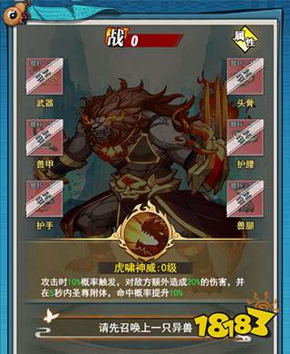 虎啸神威:攻击时10%概率触发,对敌方额外造成20%的伤害,并在5秒内圣尊附体,命中率提升10%