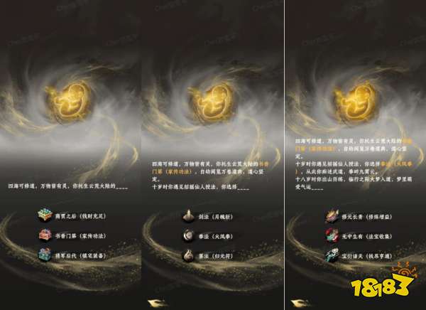 【出身】:影响新手礼包,商贾之后(灵石、材料)、书香门第(神通/功法)、将军后代(装备);推荐书香门第+剑+修元长青开局,输出高修炼快,更快节奏推图发育,容错率也更高