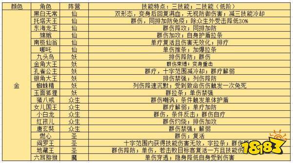 建议培养(抽卡获得):哪吒、杨戬、九头鸟、奶妈、三个圣魔。