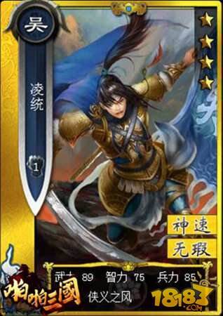 凌统是在三国里少有的子承父业的青年武将,不仅有勇有谋,在东吴众将间的口碑也是杠杠的,堪称国士。在之前的版本中他虽然只能给吕布、马超当后宫用。但在3.8版本中此子没准会有意外的表现。侠义凌统、国士凌统,一枪一弓,可更好融入当前阵容。被动技能无暇,让他拥有成为核心的潜质,或许他可成为继周瑜之后大吴国另一只潜力股。