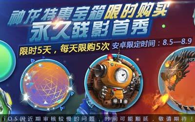 本次获得共有两款宝箱:机械傀儡特惠宝箱和神龙特惠宝箱。限时5天,每天限购5次。安卓限定时间:8.5-8.9。iOS因近期审核较慢的问题,时间可能顺延,敬请期待!