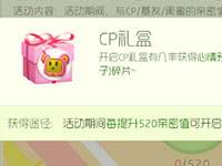 活动内容:活动期间,与CP/基友/闺蜜的亲密值每提升520点,可开启一次CP礼盒,参与双刷节可提升亲密值。