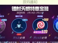 镭射天眼特惠宝箱限时开启,开启时间为1月18日~1月22日,为期五天,在活动期间内消耗金蘑菇即可开启!