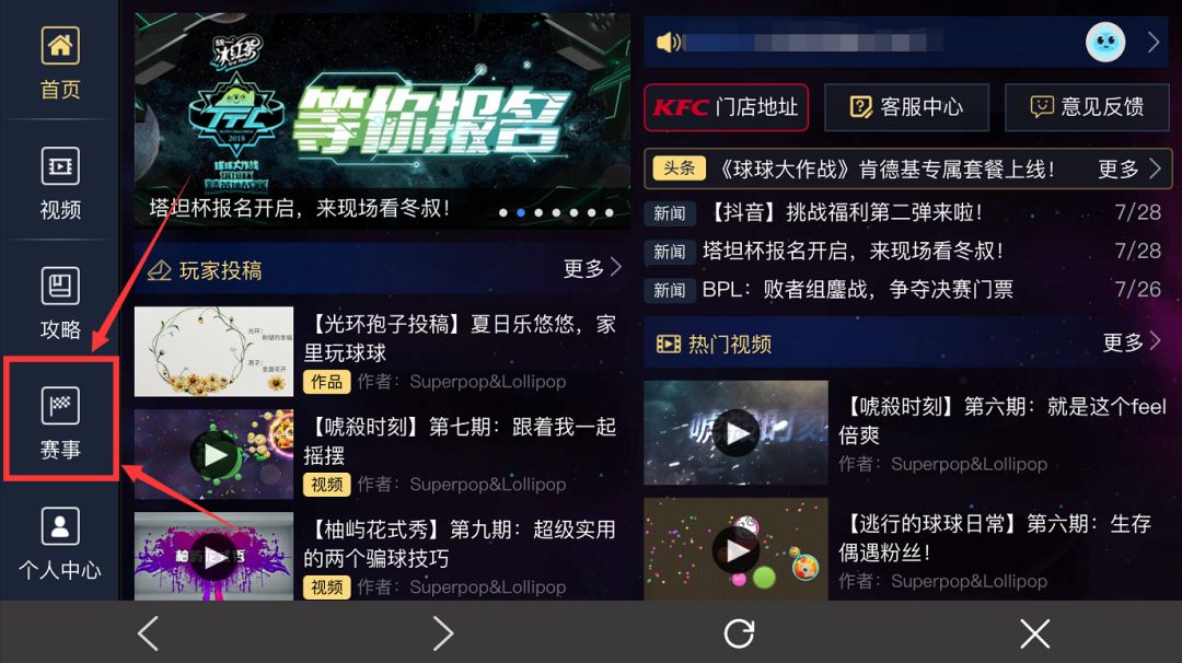 (3)点击攻略-进入左侧“赛事”菜单,可观看直播