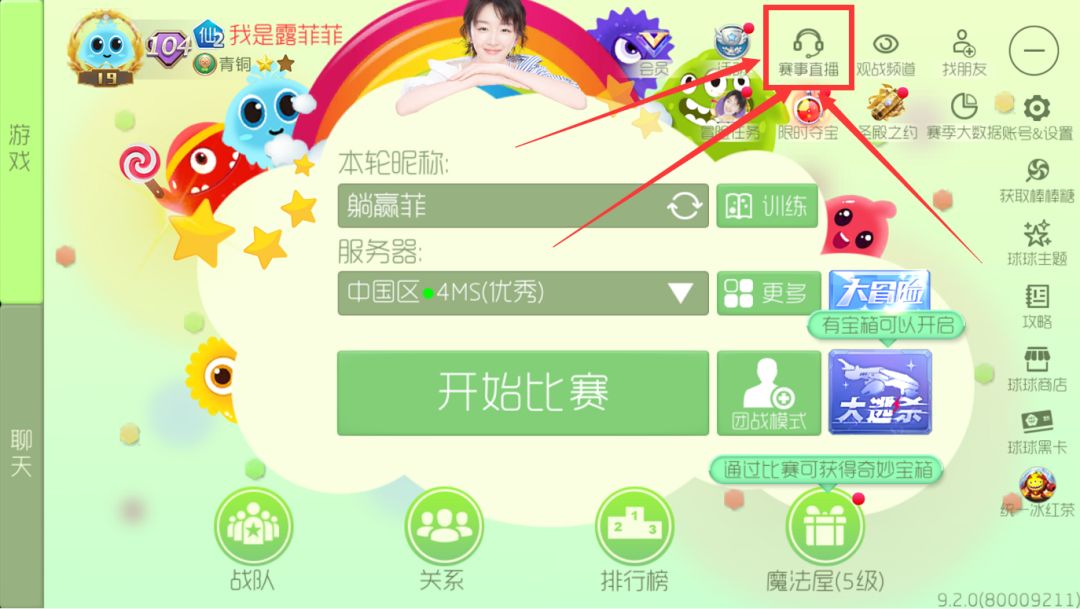 (2)点击游戏界面右上角“赛事直播”按钮,可进入赛事直播