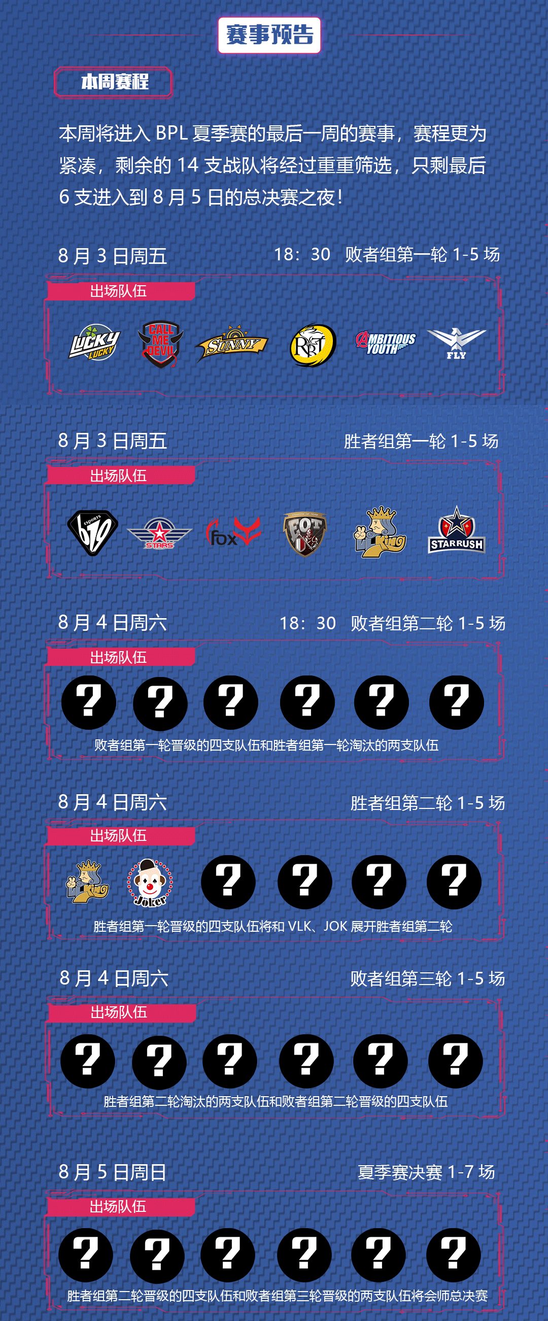 究竟哪六支战队能成功抓住这最后的机会,晋级到决赛,就让我们一起期待吧!2018BPL,不服就去战!