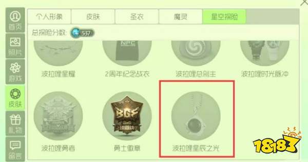 点击游戏主界面左上角头像,进入个人主页-皮肤-星空探险,点击“波拉哩星辰之光”并输入兑换码即可成功兑换。