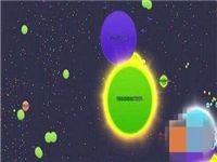 然后大球沿着队友旁边分身,方向成一个切线,这里大球变成了大量的体积略小于紫球的分身。