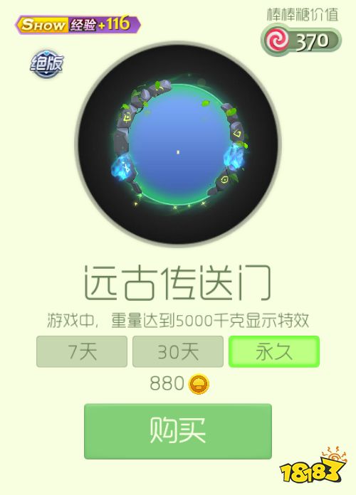 神奇的远古传送门光环,绿色藤蔓缠绕着刻有铭文的碎石,简单而温和,却是能沟通远古时空的强大存在。该光环可以让球宝的show值增加116点!