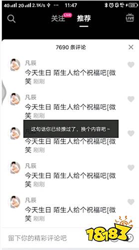 抖音一天的评论是没有上限的,但是不要重复评论,不要发布相同的评论,不然官方会提示这句话你已经撩过了,换个内容吧!评价时间间隔较短,在同一条视频重复发布多条评论,都有可能会被官方认定为刷评论的,有可能会把你关进小黑屋。