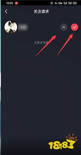 选择右侧的勾号就表示同意这个人的关注请求,选择x即表明不愿意接受ta的关注请求。