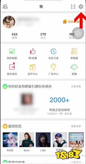 首先打开微博app,点击首页我选项,进入个人中心后点击右上角设置图标,