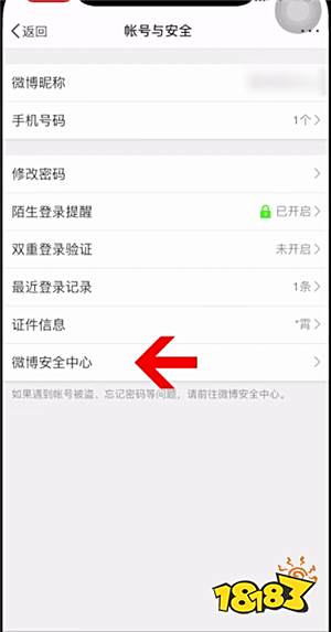 这时在设置页面点击账号与安全,然后点击微博安全中心,
