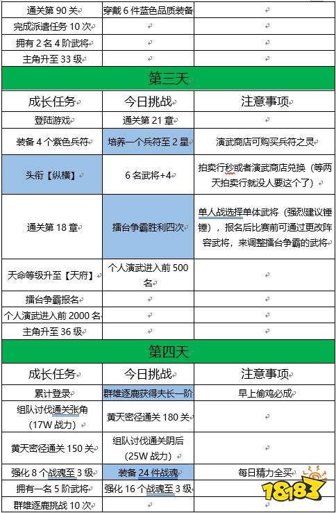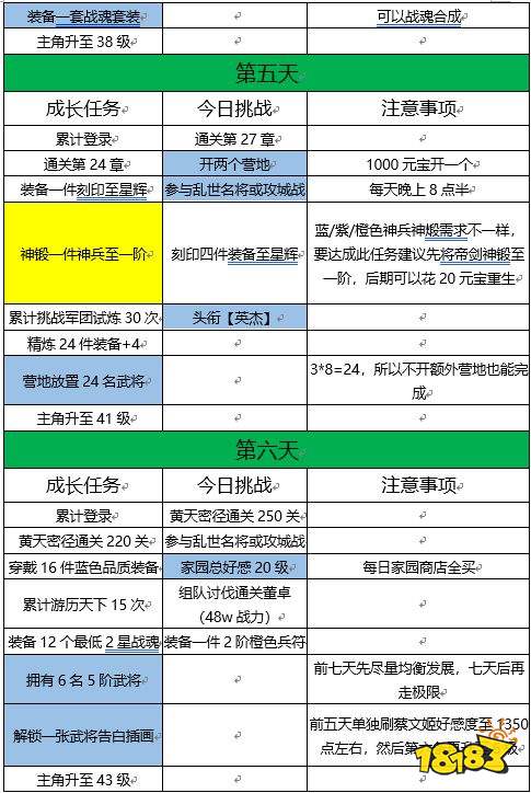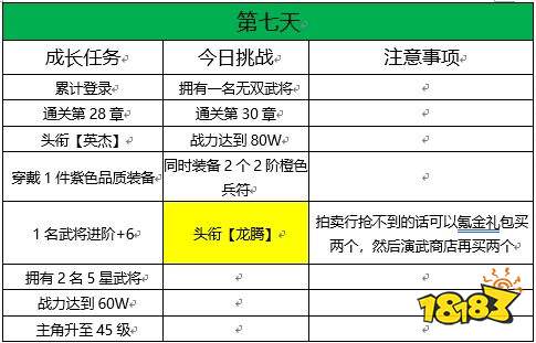 6:前七天先尽量均衡发展,七天后再走极限,方便完成任务(武将进阶及装备品质)