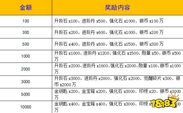 说明:单日累计充值,达到以下档位,可活动对应档位的返利,单日累计,次日重置;