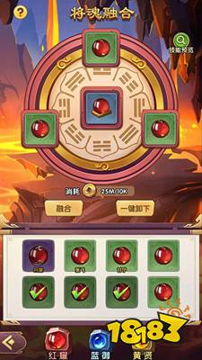 4、未达到最高品质的将魂可在将魂融合功能中消耗金币进行融合,将3个同类型同品质的将魂放入后,融合获得更高品质的同类型将魂。