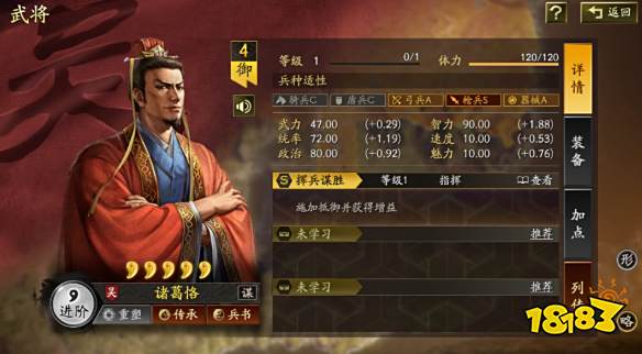 6.诸葛恪既能在战斗初期有效降低兵损,还能见缝插针的补充输出,可谓攻防一体。较低的统御值又使他的上场十分灵活。如何搭配阵容,想必主公已经胸有成竹了。