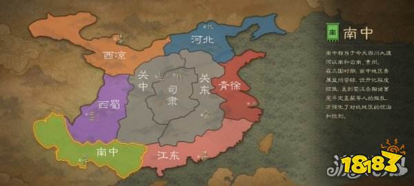 南中:选这个地区主要是因为说书人分布较多,能够尽早的去见到它们从而触发剧情解锁演义章节,演义提供的资源数量十分丰富的,而且成本也低,所以相对来说发育的会更加舒服。