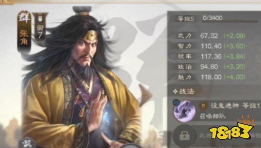 3.开荒前期很难上高统御阵容,因此吕布董卓这些都不适合,*多上阵一个张角走召唤流开荒,这套阵容是很多玩家在S1赛季测试过的群雄开荒阵容,依靠华佗的回复和召唤物开荒,因此强度还是非常不错了,如果你们没有更多比较厉害的武将可以使用一下。