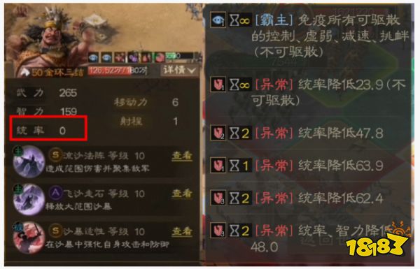 简单来说就是通过战法降低首领的统率,削减其防御能力;主公可以给5位上阵武将合理分配战法,并且利用武将特性(如太史慈的连击),让首领持续处于低统率状态,从而使得己方武将输出拳拳到肉!
