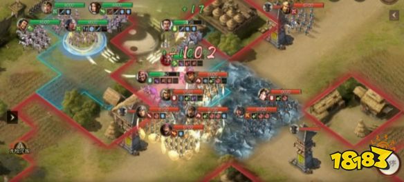 第一回合:桃园三兄弟中路设宴,后排黄月英使用战法【奇门遁甲】区域增加伤害和免伤后,4人猥琐抱团,让桃园兄弟吸引敌军仇恨,敌军在中路扎堆群殴;