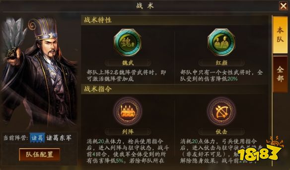 魏武:部队上阵2名魏阵营武将时,即可获得魏阵营协力