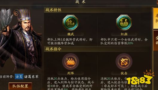 东吴:部队上阵2名吴阵营武将时,即可获得吴阵营协力