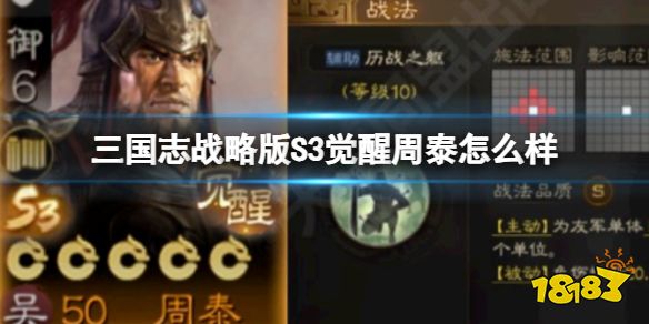 三国志战略版S3觉醒周泰怎么样,还有不少小伙伴不清楚三国志战略版S3觉醒周泰怎么样这个武将的强度,下面小编为大家带来了相关攻略的介绍,感兴趣的小伙伴和小编一起来看看吧。