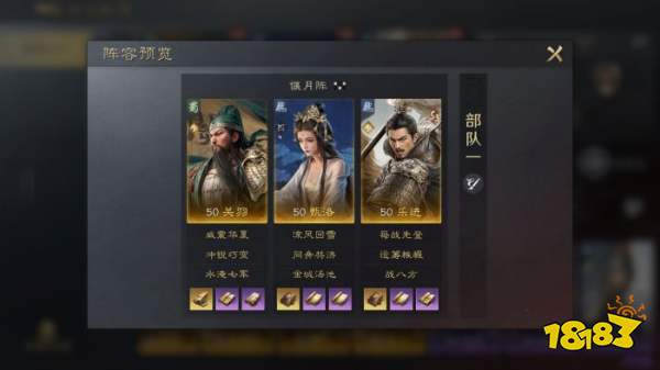 乐进的自带战法【每战先登】可以给关羽提供先攻、增伤和减伤效果,携带战法【战八方】可以提供畏惧效果与关羽战法联动。关羽携带【冲锐巧变】和【水淹七军】配合,可以让【水淹七军】直接发动,造成异常状态,甄洛对武力最高的关羽进行高额增伤。
