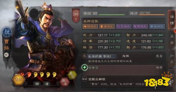 曹操速度要保证超过典韦、许褚,前期全速加点,超过后全智加点;许褚、典韦全武加点。