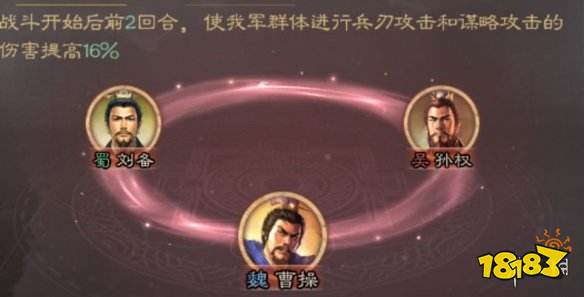 曹操唇枪舌战可以拥有不俗的嘲讽能力,同时又可以带点输出(不建议使用白眉搭配唇枪舌战,可以用诱敌深入/兵锋替换坐守孤城,进一步加强输出,或搭配净化,强化抗干扰能力),连带着就可以让典韦快速叠加文武双全和绝地反击,并打出巨额输出。