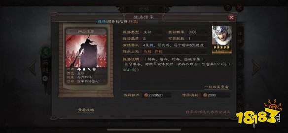 点评:这个技能类似一骑当先,同样是30%概率的纯输出技能,所向披靡的伤害虽然接近一骑当先的两倍,但准备一回合这个缺陷比较致命。当该技能每次触发2回合及以上时,就是妥妥的T0战法,不然只能相当于T2战法而已。