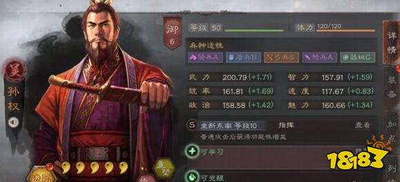 孙权的技能叫做坐断东南还是非常好用的,效果是自动发动普通攻击有几率获得连击、洞察、先攻、必中、破阵这些效果中的其中一个,如果自己是主将这个状态优先获得,这个技能如果是一个人并没有什么用,要是和不同的角色搭配起来就非常强力了,当然这些效果都是随机能不能随机到喜欢的就要看运气了。