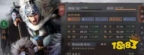 属性上马超拥有超绝的武力,但在其他方面偏弱,尤其是初始智力极低容易遭受各种智力技能的重创。技能进一步提升了武力,并使普攻拥有群攻效果,综合起来等于216%的普攻伤害。普攻的好处就在于每回合都可以触发,非常的稳定。总的来说马超是一个强力的输出型武将。