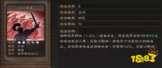 游戏中,荀攸的自带战法十二奇策集输出与辅助效果于一身,具有削弱敌军、增加友军、造成伤害等多种效果,深受依靠主动战法输出为核心队伍的喜爱。