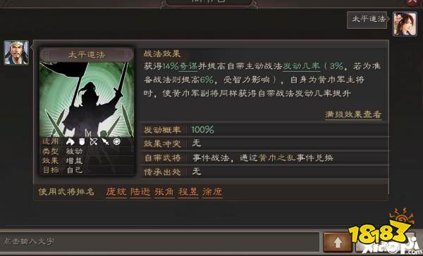 以上便是小编给大家带来的三国志战略版太平道法战法攻略的全部内容。