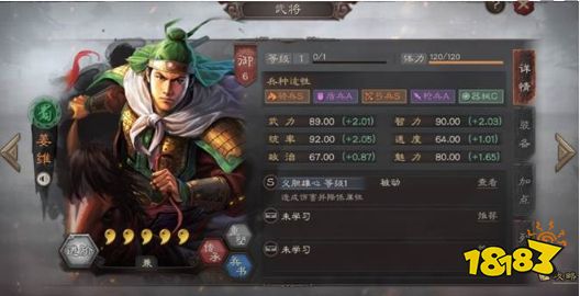 从武将的基础数据来看,姜维的武力、智力、统率、魅力都非常的有潜力,无论是作为主力输出还是作为辅助型武将都是绰绰有余的,搭配其他的武将就可以爆发出超强的战斗力。