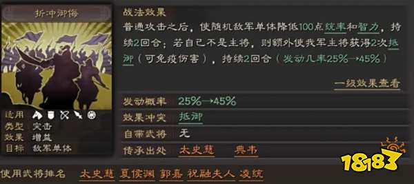 高红满红虎臣就不一样了,速度快,爆发高,特别是太史慈不会带折冲,会再带一个输出技能。