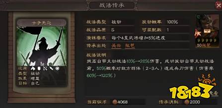 【士争先赴】被动战法,由张苞和关兴传承而来。提高自带主动战法部分伤害,并且成功发动自带主动战法前,有概率对敌军群体造成兵刃伤害,该战法在兵刃队伍中的适用性会比较高。