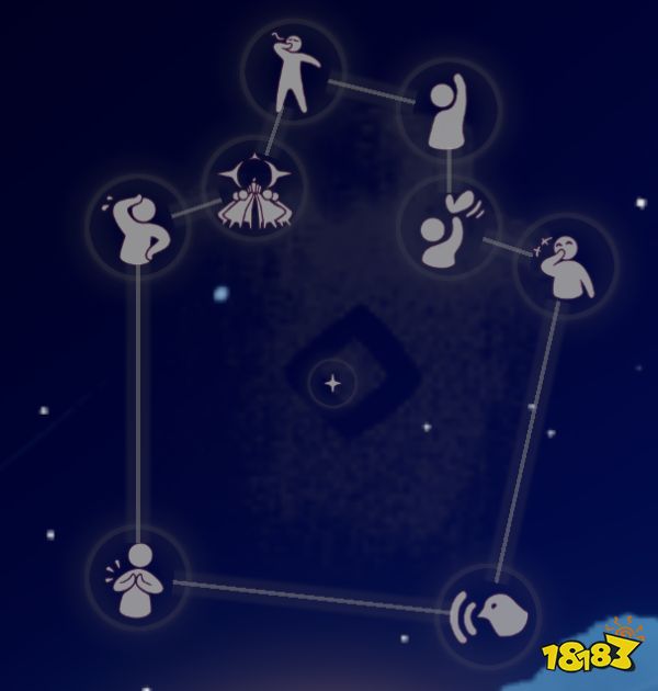 第九个动作为特殊动作,右边小岛下方山洞两个人举蝴蝶打开门,进去以后需要8个左右的人点燃开关(最少4个),可以解锁一个举蜡烛动作。