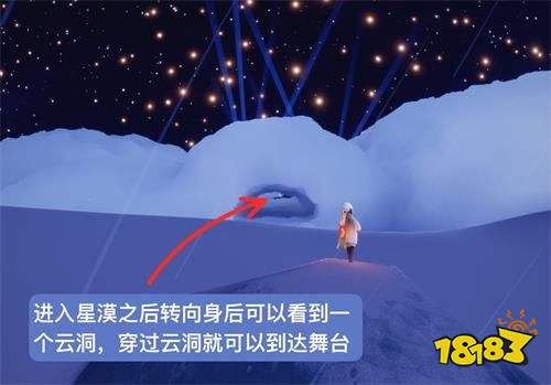 进入星漠之后转向身后可以看到一个云洞,穿过云洞就可以到达舞台