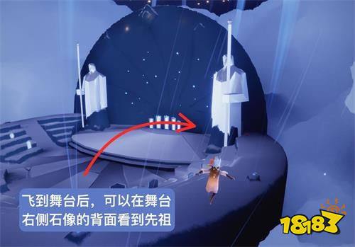 飞到舞台后,可以在舞台右侧石像的背面看到先祖