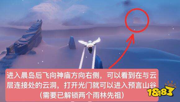 1、我们要先找到晨岛的呢,在它的右边就可以看到这个云洞地图,进去以后进入屏障门就可以去到这个预言山谷;